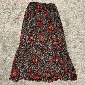 Rue 21 Black Red Floral Elastic Waist Grunge Fairy Cottagecore Maxi Skirt sz L