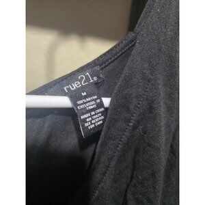 Rue 21 Black Y2K Crop Top Tie Waist Low Cut Women's Medium Short Sleeve