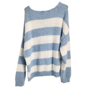 Rue 21 Blue Striped Fuzzy Sweater Womens Size Extra Large XL *NWT