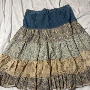 Note: I believe based on original seller’s measurements its a 36” waist but please reference pictures boho print, tiered skirt, bohemian style, flowy, midi length, earth tones, lightweight fabric, relaxed fit, festival fashion, layered skirt