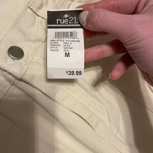 New With Tags, Rue 21 Cargo Pants, Medium (size 3-5, measurements in photos), Cream, New With Tags, Off White, Mom Jeans, Dad Jeans, Hip, Boho, Skater, Casual, 98% Cotton, 2% Spandex, Wide leg/ straight leg, 90s, Y2K fashion, Minimalist