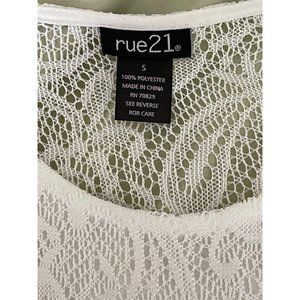 Rue 21 Women's / Juniors Creamy White Lace Top Floral lace & Colorful Floral Bottom Sleeveless Sun Dress. Size Small Measures: 15.5“ (31“D) armpit to armpit, 26" waist, 34.5“ length. Very cute, has 2 different design lace. Preowned, better than normal wear. No discoloration, fading, noticeable marks/stains, rips or holes. Clean, smoke-free home.