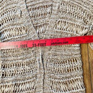 Rue 21 Crochet Open Weave Fringe Cardigan 3/4 sleeve Size Small Tan Beach Cover