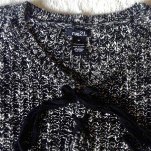 Like new cute Rue 21 Crop sweater. Size medium, black and white with zig zag up tie design. Adorable to pair with high waist jeans. Measures 18in across under armpits and 20in from shoulder to bottom. Smoke free home