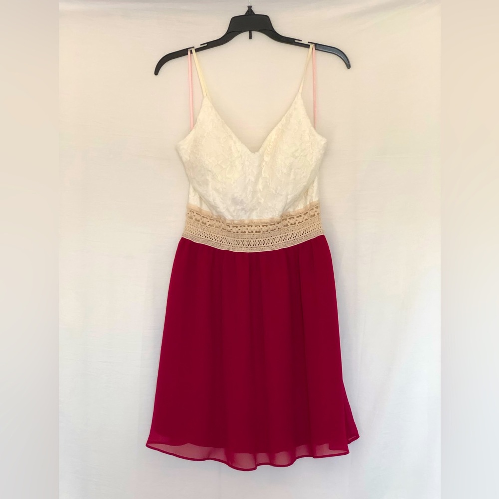 Rue 21 Cream and Burgundy Dress