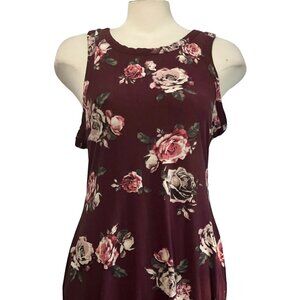 Rue 21 Floral Sheath Dress Sz Large Womens Burgundy Red Sleeveless