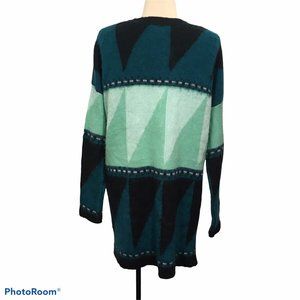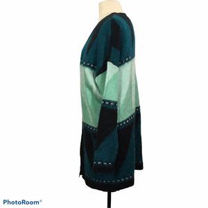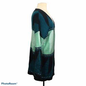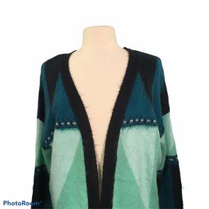Rue 21 Geometric Blue Long Open Front Cardigan Sweater, Fuzzy, Large