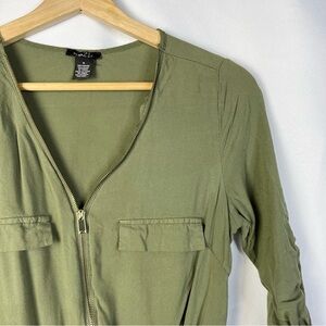 Rue 21 Green Zip Front Utility Half Sleeve Romper S