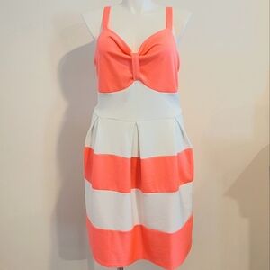 Rue 21 Hot Pink and White Striped Pleated Bow Dress