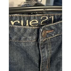 Rue 21 Women's Bootcut Jeans in Size 13 feature a solid dark wash denim with slim fit. These stylish blue jeans are easy to care for and machine washable.