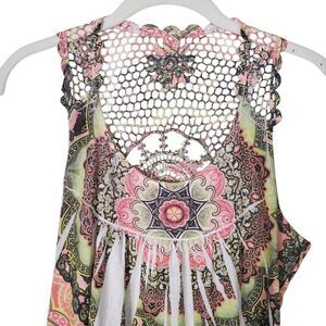Rue 21 Mandala Print Crochet Back Sleeveless Boho Tunic Top Multicolor XL