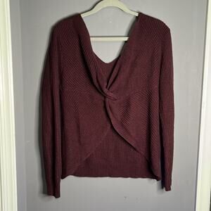 Rue 21 Maroon Acrylic V Neck Sweater Twist Tie Back Size XL