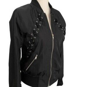 Rue 21 Motorcycle Bomber Biker Style Jacket Criss Cross Streetwear Trendy Size S
