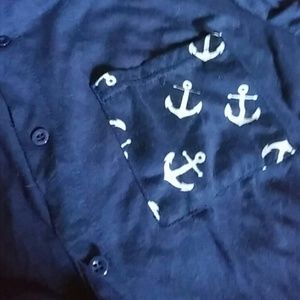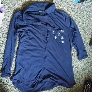Rue 21 Navy blue button down blouse with anchor pocket