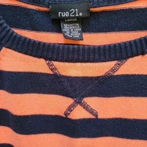 Rue 21 Orange & Navy Blue Striped Sweater Size: Large