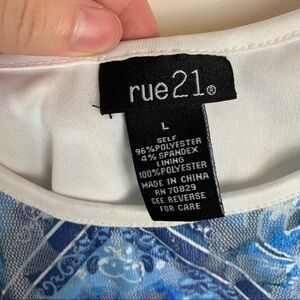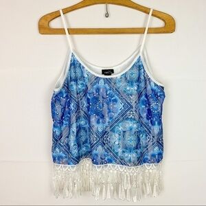 Rue 21 Patterned Blue Lace Trim Tank Top