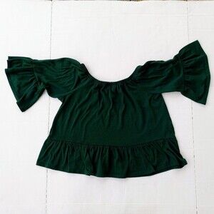 Rue 21 Peasant Style Blouse-Medium-Hunter Green-Bell Sleeve-Peplum Boho.-Cropped