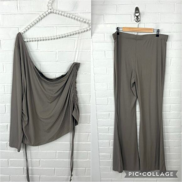 Rue 21 Plus Size Mocha Ribbed Knit Top & Pants Lounge Set Size 3X