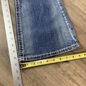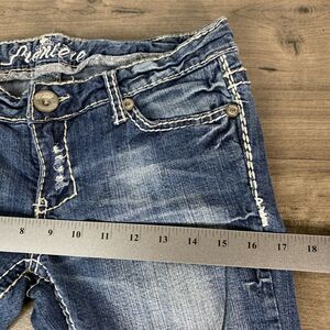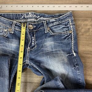 Description: RRue 21 Premiere Jeans Size 3 / 4 Regular Womens Junior Boot Cut Distressed Flapped Pockets Embroidered