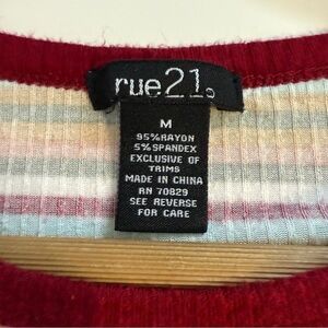 Rue 21 Retro Maroon Stripe Short Sleeve Super Stretchy Y2K Casual Shirt