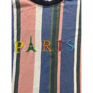 Rue 21 Shirt Adult Medium Retro Paris Colorblock Vertical Striped Colorful Mens