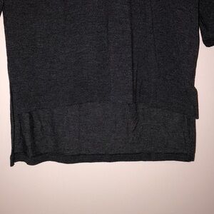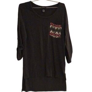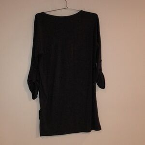*Dark gray color, stretchy cute pocket, shorter in front, 3/4 length sleeves that button up, scoop neck, soft