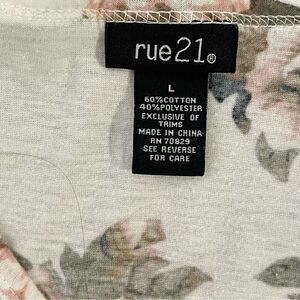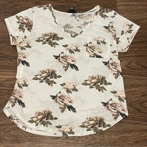 Rue 21 Short Sleeve Floral V-neck Tshirt Off White Pink Green Size Large