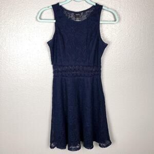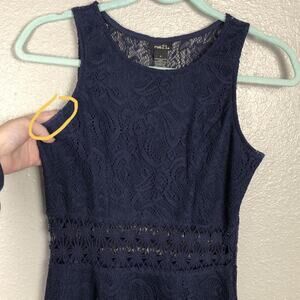 Rue 21 Size Small Navy Blue Lace Skater Dress w Cut Outs Exposed Midriff Section