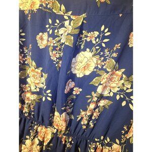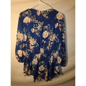 Rue 21 Size XL Blue Floral Tunic Top Shirt Blouse Zip Up Boho Vibes Womens