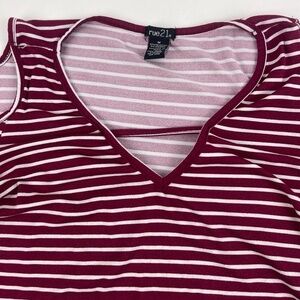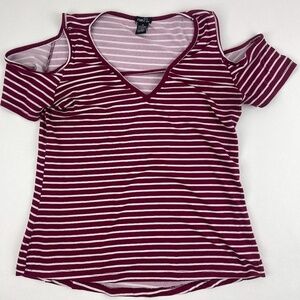 Rue 21 Tshirt Womens Medium Red White Striped Open Shoulder