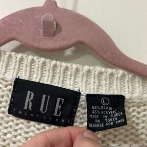 Rue 21 Vintage Womens Size Large Ramie Christmas Sweater Holidays Nutcracker Bear Y2K. 55% ramie and 45% acrylic. It measures 22 inches from armpit to armpit and the length from shoulder to hem is 29 inches. There is a mark on the front, as pictured.