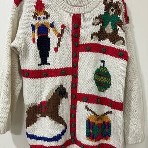 Rue 21 Vintage Womens Large Ramie Christmas Sweater Holidays Nutcracker Bear Y2K