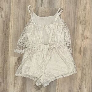 Rue 21 White Lace Tank Shorts Layered Boho Romper White Keyhole Back Size M