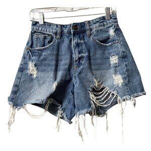 Rue 21 Women Distressed Cut-Off Jean Shorts Size 6 Cotton Preppy Denim Frayed