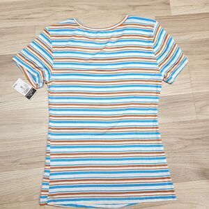 Rue 21 Womens Blue Brown Stripe Shirt Favorite Crew Neck Tee Medium