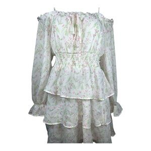 Rue 21 Women's Floral Print Fit & Flare Mini Dress Off-Shoulder Dress Size L
