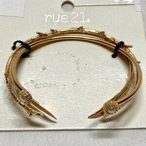 Rue 21 Women's Goldtone Fashion Bangle Set 3 Pack Gold Leaf Stackable NWT