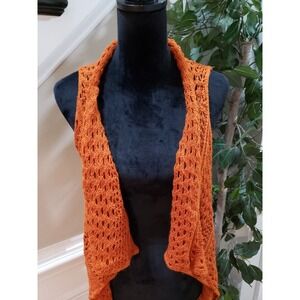 Rue 21 Womens Orange 100% Acrylic Sleeveless Open Front Cardigan Sweater Medium