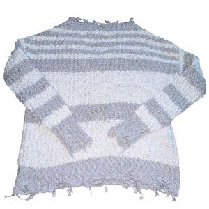 Rue 21 Womens Oversized, Distressed V-Neck, Soft Sweater-Gay/White-Size Small-GU