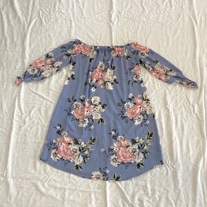 - Rue 21 Women's Size S Boho Blue Floral Off The Shoulder Long Sleeve Dress Flowy