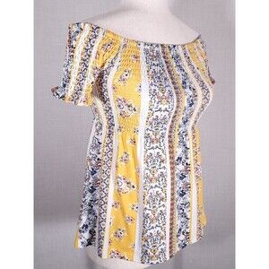 Rue 21 Women's Smocked Fit & Flare Boho Gypsy Blouse On or Off-Shoulder SZ Small