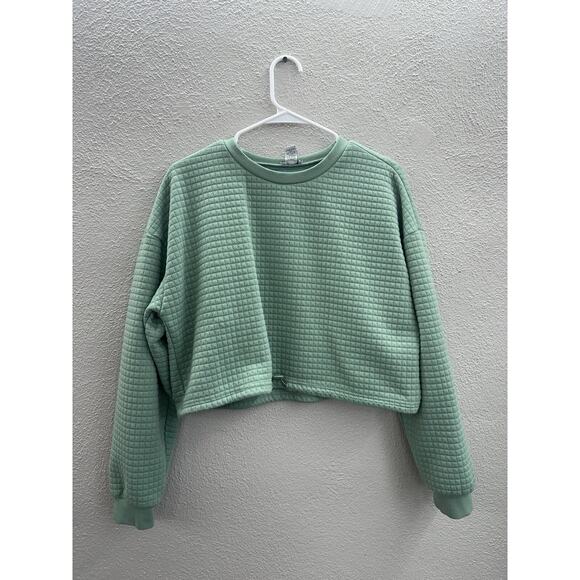 Rue 21 Womens Top Size Large Green Quilted Long Sleeve Cropped Pullover