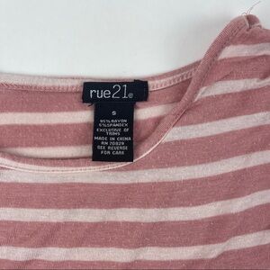 Rue 21 Womens Tshirt Pink White Blue Striped Small