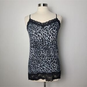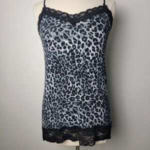 Rue 21 Y2K Black Gray and White Leopard Print Lace Trim Cami Top Size XL