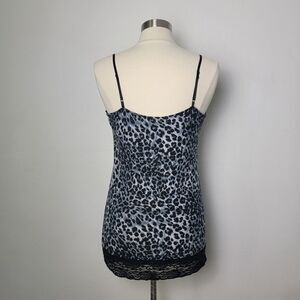 Rue 21 Y2K 2000s Black Gray and White Leopard Print Lace Trim Cami Top Size XL