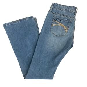 Rue 21 Y2K denim jeans. Medium wash bootcut jeans are perfect with your cowgirl boots. Embroidered design on back pockets.