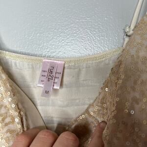 Rue 21 Y2K Ivory Gold Sequin Strappy Bodycon Babydoll Soft Girl Mini Dress M