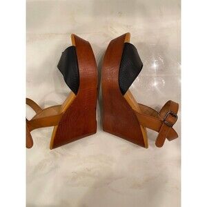 Rue 21 etc! Strappy Wedge 4 inch heel Black Sandals Size L 8/9 Stylish Chic Boho