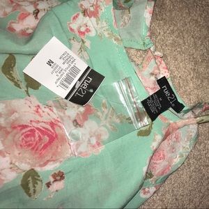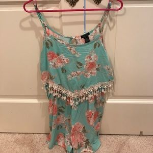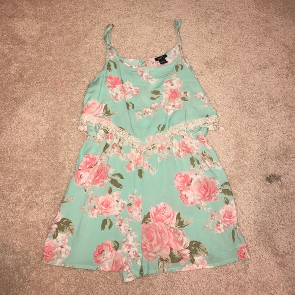 a cute fashionable turquoise floral romper from Rue 21! Extra button and tags still on. Never worn. Adjustable straps.