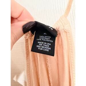 The Rue 21 light pink tank top with chiffon overlay featuring an elephant/colorful design in XL size is a stylish and versatile addition to any woman's wardrobe. This regular fit tank is perfect for the summer and spring seasons, with its sleeveless design and cropped style. Made from knit fabric, it is easy to care for with machine washability. The pink color adds a playful touch to any outfit, while the unique design gives it a fashionable edge. Perfect for casual days out or summer evenings, this tank is sure to become a go-to piece for any occasion.